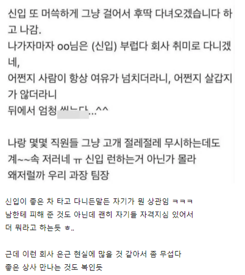 신입이 G80 탄다고 꼽주는 상사